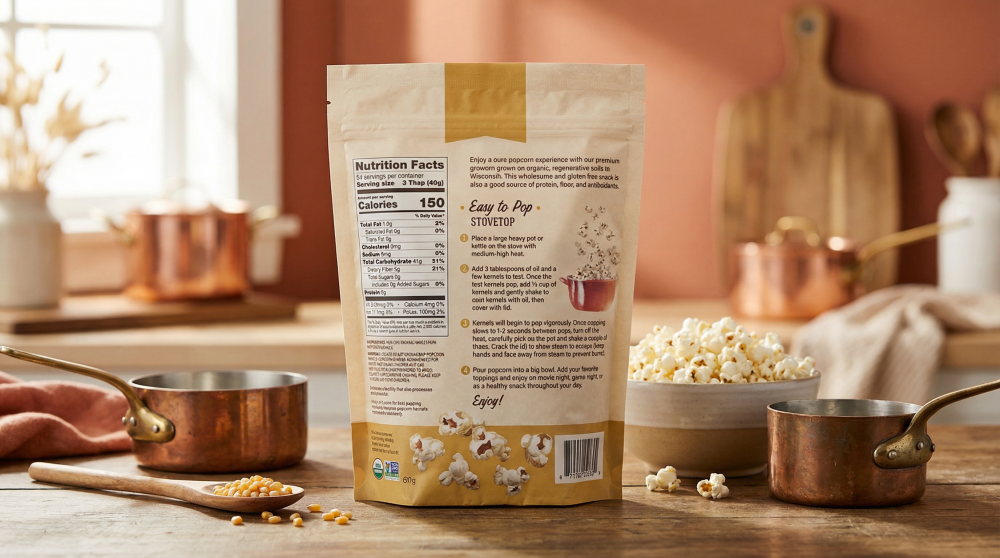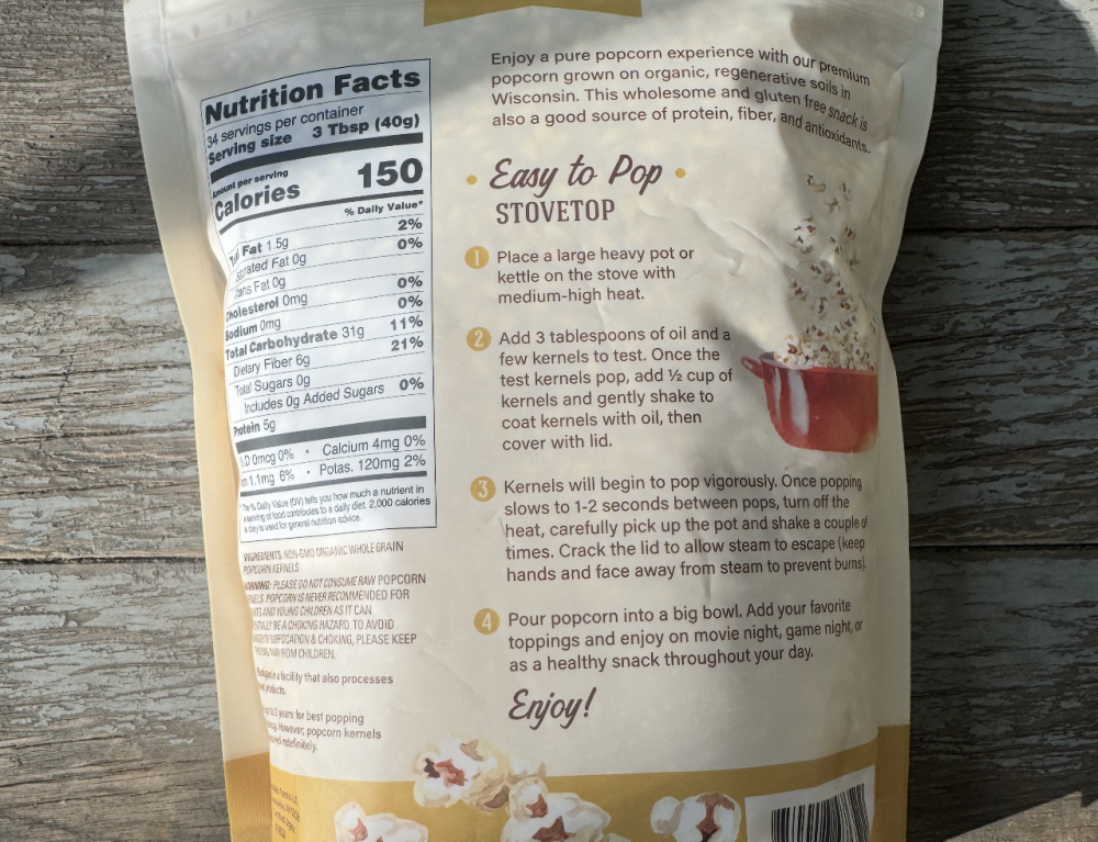 Enjoy a pure popcorn experience with our premium popcorn grown on organic, regenerative soils in Wisconsin. This wholesome and gluten free snack is also a good source of protein, fiber, and antioxidants.