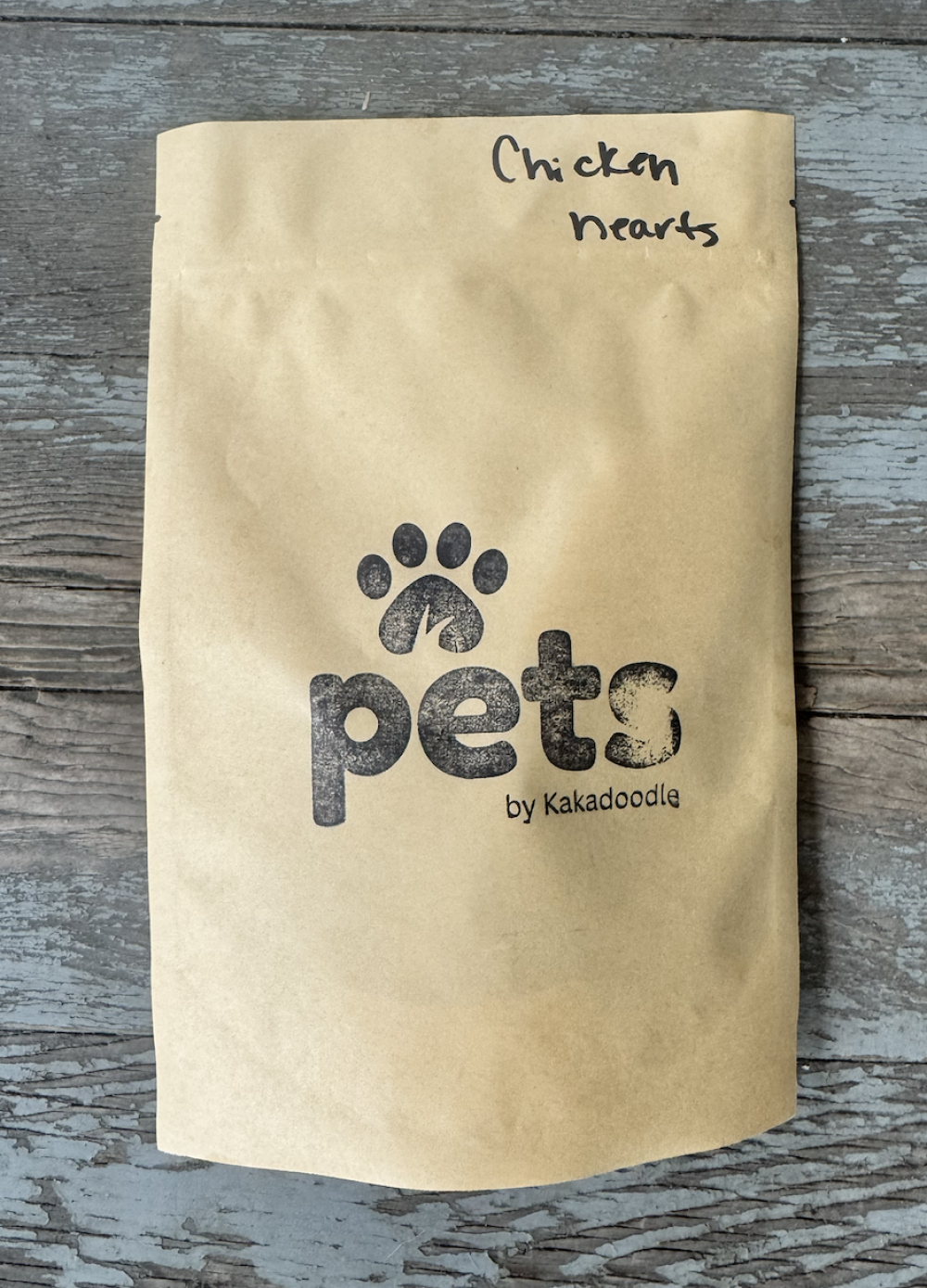 I’m thrilled to share Kakadoodle Farm’s dehydrated chicken hearts with you! These tasty little treats are like popcorn for my pups—crispy, rich, and oh-so-flavorful. Raised with love on our pasture, our chickens enjoy a natural diet without any synthetic chemicals, hormones, or antibiotics.